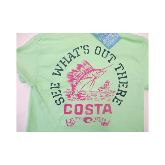 New Authentic Costa Short Sleeve T-Shirt See What's Out There Mint/ Pink Writing