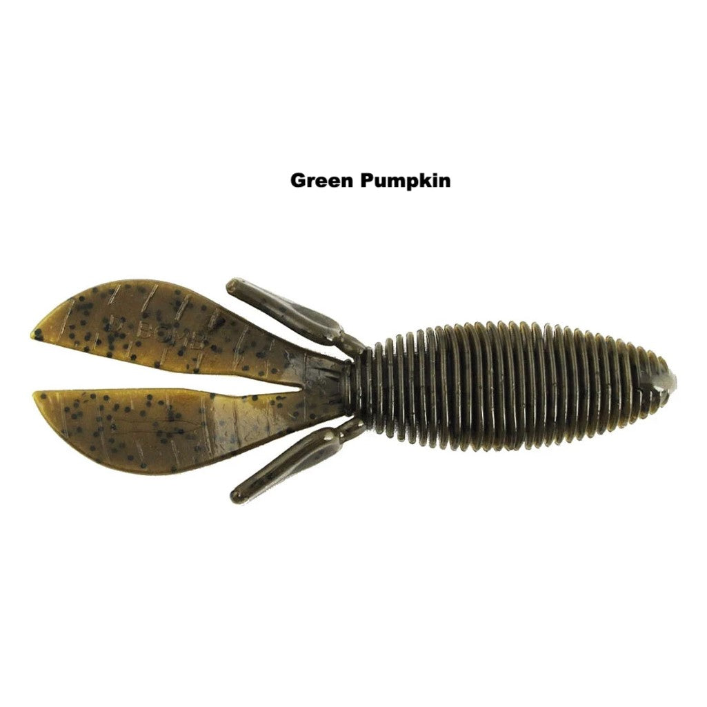 Pitching and flipping has a new go-to bait. The D Bomb is a bulky 4.5” creature bait with a unique ribbed body that displaces lots of water resulting in a straight fall. The tails sail when left connected or flap wildly when separated. The body is thinner where the hook comes out for easy hook sets but has a thicker head so the bait stays on the hook.