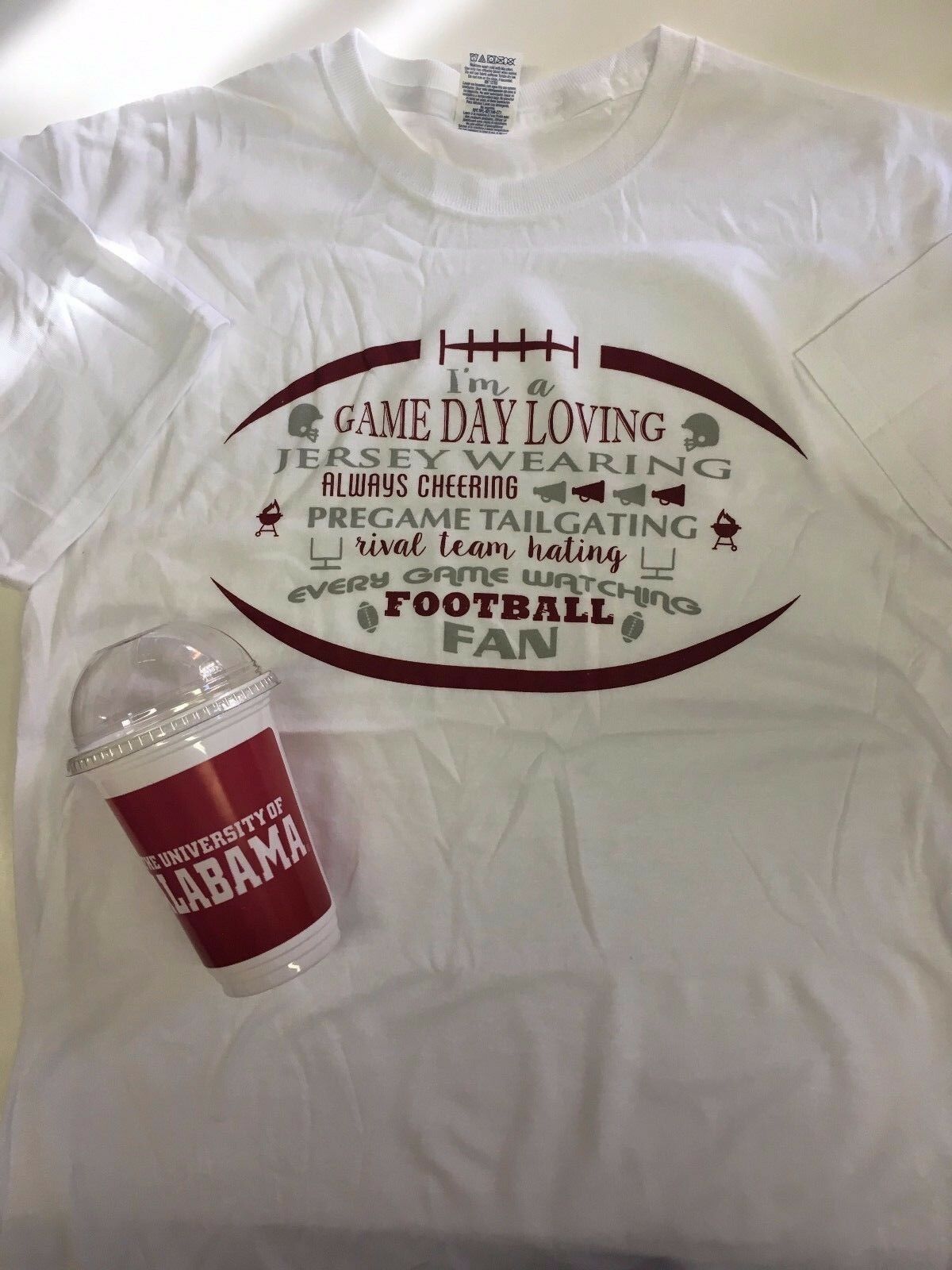New Alabama Crimson Tide Ultimate Fan Game Day Loving T -Shirt Inside 16oz Cup
