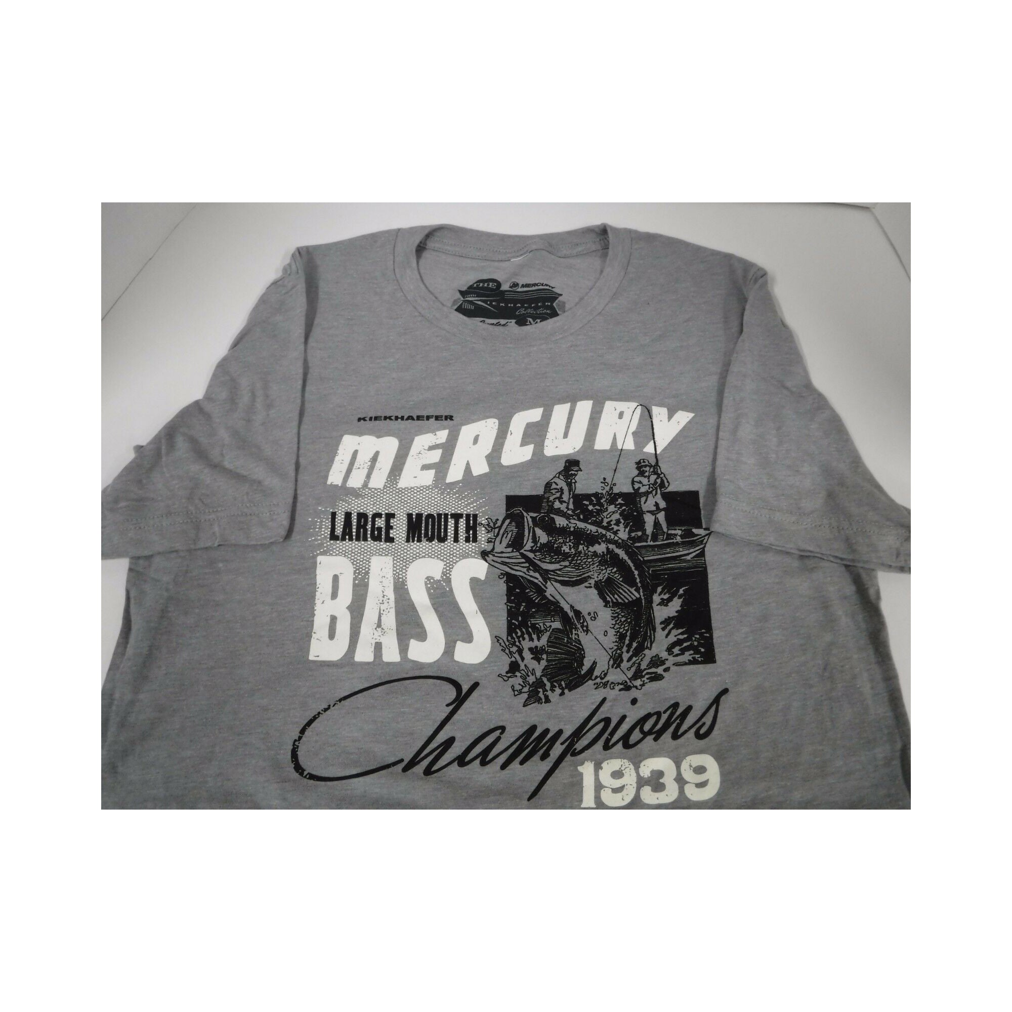 New Authentic Mercury Marine Short Sleeve Shirt Gray w/ Bass Fishing Champions 1939
