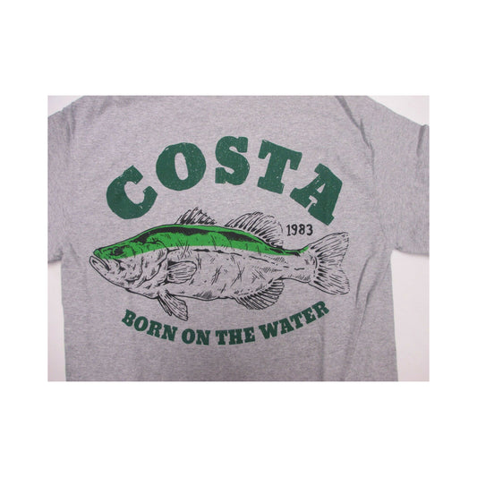 New Authentic Costa Short Sleeve T-Shirt Bass Born on the Water Light Gray