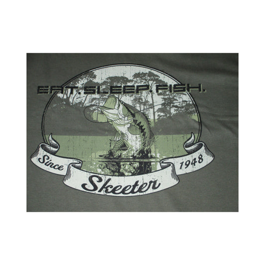 New Authentic Skeeter Short Sleeve T-Shirt Fatigue Green/ Front Bass with Eat Sleep Fish