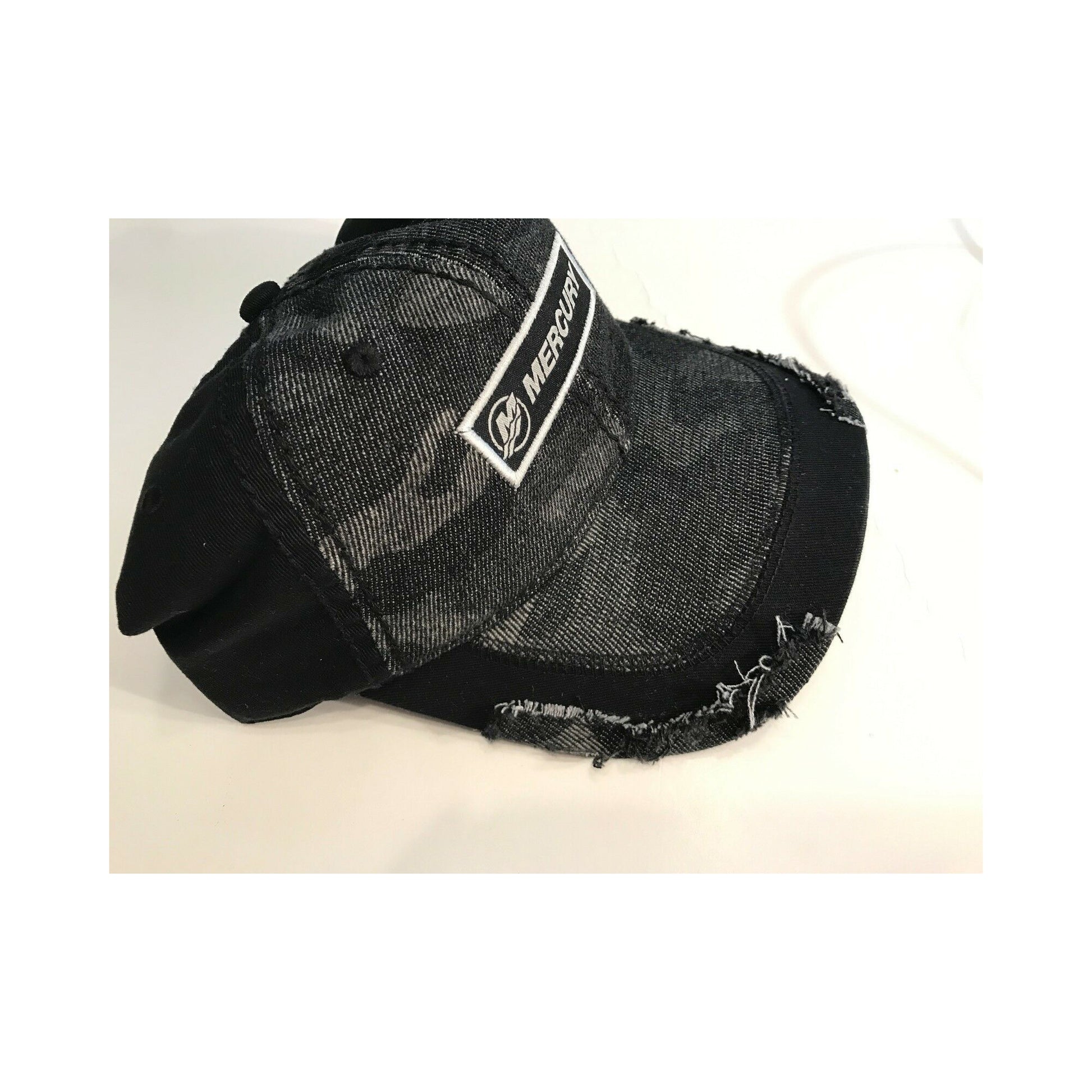 Authentic Mercury Marine Hat Frayed Black and Gray Camo