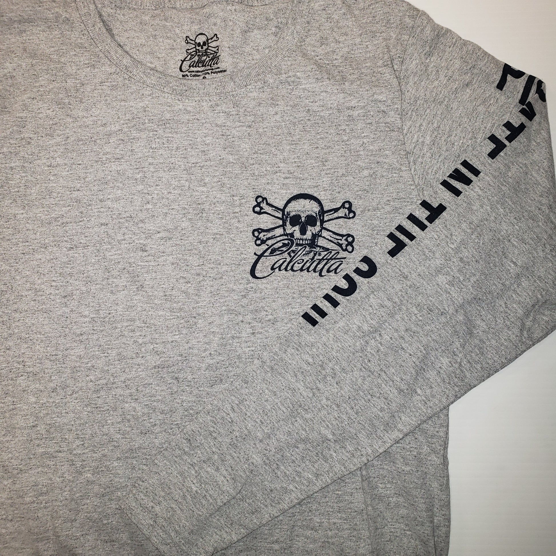 New Authentic Calcutta Small Long Sleeve Shirt Heather Gray / Navy Original Logo Front and Back
