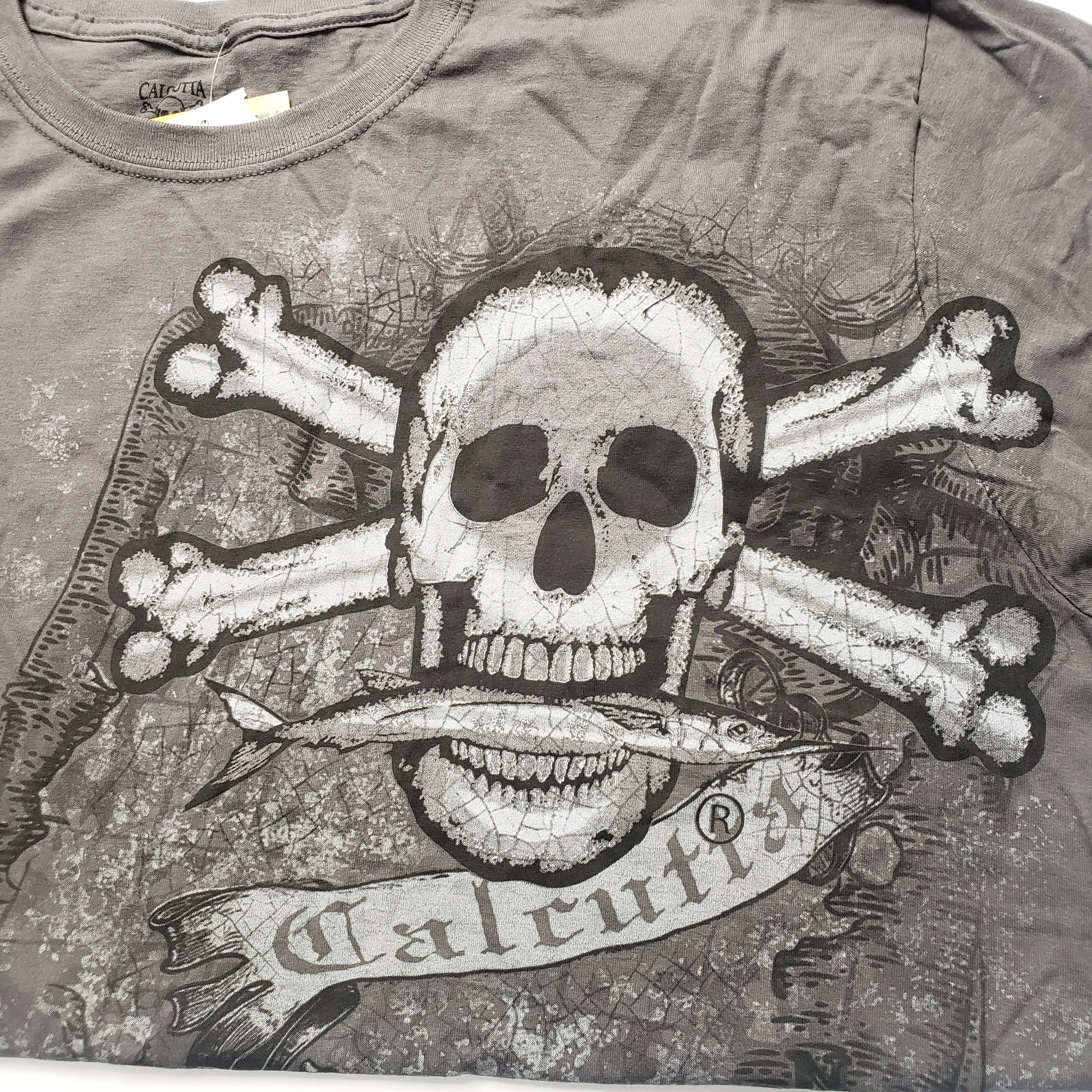 New Authentic Calcutta Short Sleeve Shirt Smoke(Gray)/ Front Kickback Skull 2XL