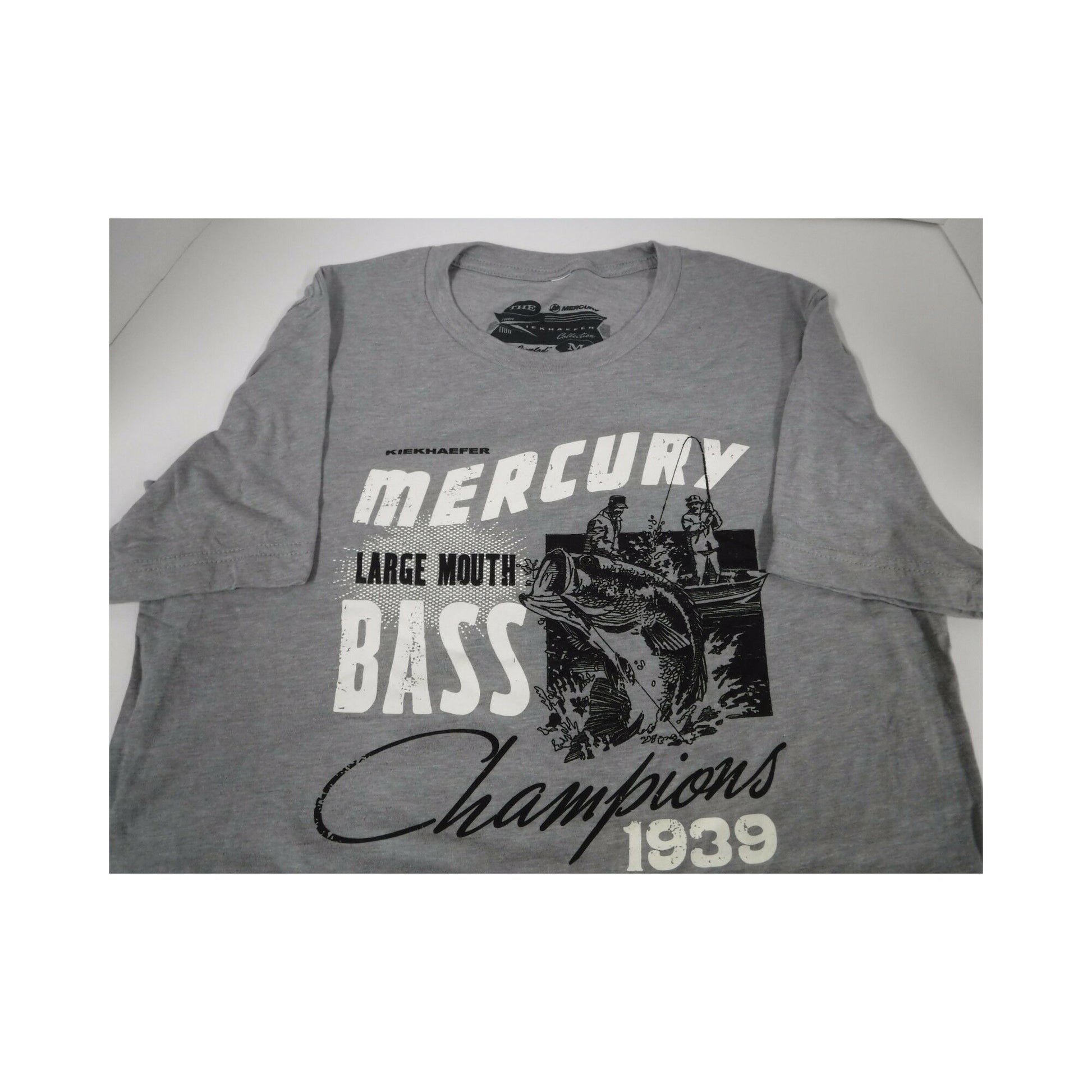 New Authentic Mercury Marine Short Sleeve Shirt Gray w/ Bass Fishing Champions 1939 Small