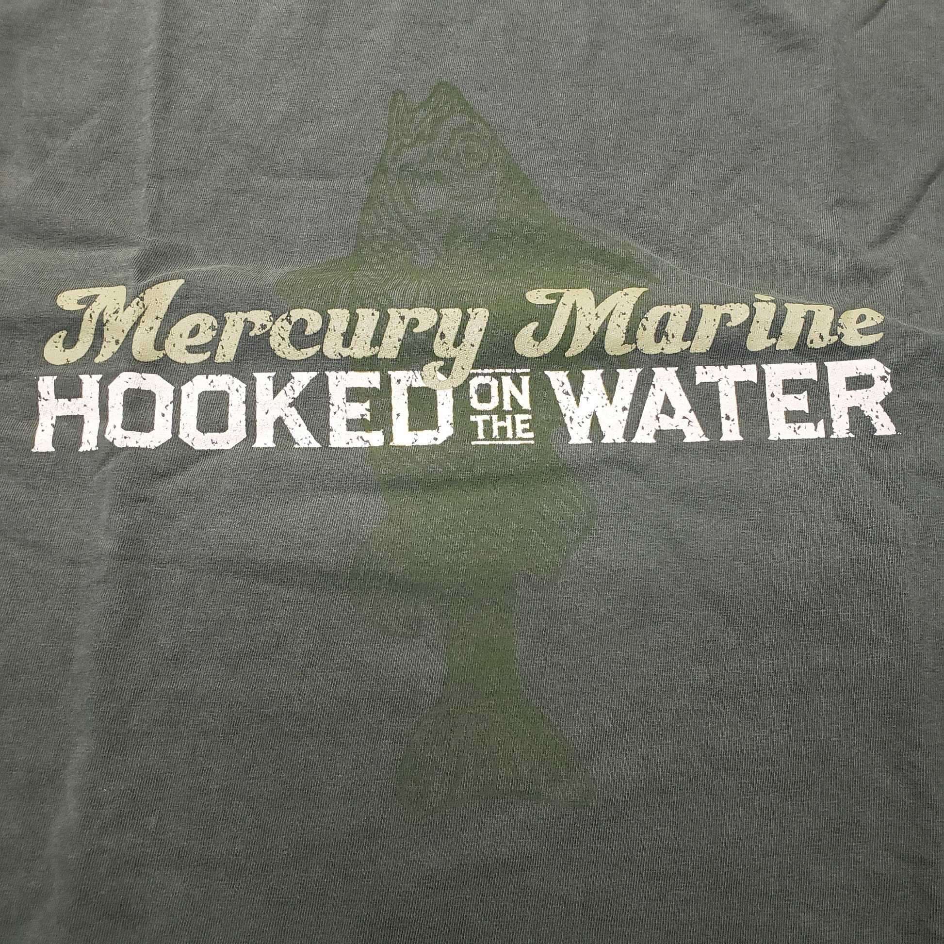 New Authentic Mercury Marine Short Sleeve Shirt Olive Green w/ Hooked On The Water 2XL